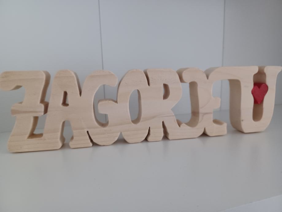 Drveni suvenir, srce se može izvaditi iz slova, ručni rad. Visina 9 cm, širina 29 cm. Po naruđbi moguće drugačije veličine