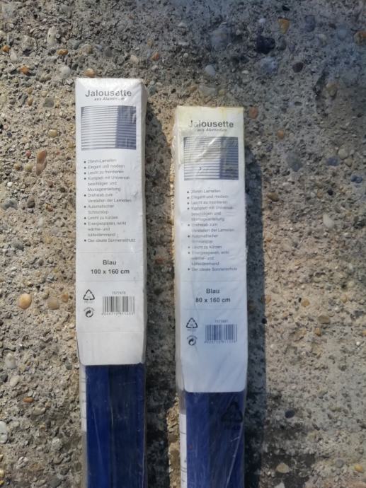 Prodajem nekorištene aluminijske žaluzine plave boje.Tvornički zapakirane.Dimenzije su 80x160 i druge su 100x160 cm.