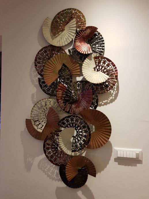 Zidna metalna dekoracija u dimenzijama 148 x 80 cm. Moguće ga je postaviti horizontalno ili vertikalno.