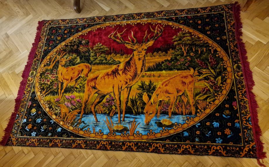 Ukrasna zidna tapiserija stara cca 70 godina, odlično sačuvana, kao nova, kupljena u Njemačkoj, krasila je zid spavace sobe bake dugi niz godina. Kemijski je potpuno očišćena i pospremljena. Dimenzije: dužina 174 cm x visina 117 cm