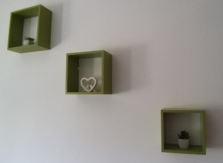 Zidne police ("Kvadrati" 3 u 1), drvene, zelene boje, , 3kom - 28 cm, 24 cm i 20 cm (svaka veća za 4 cm), 10,00 EUR