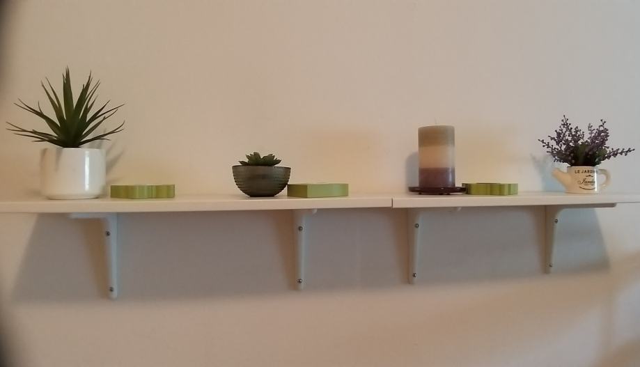 Zidne police (drvene, bijele), 3 kom, dulj 59 cm x šir 20 cm, 5,00 EUR/kom