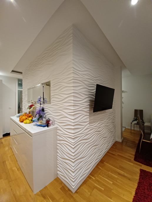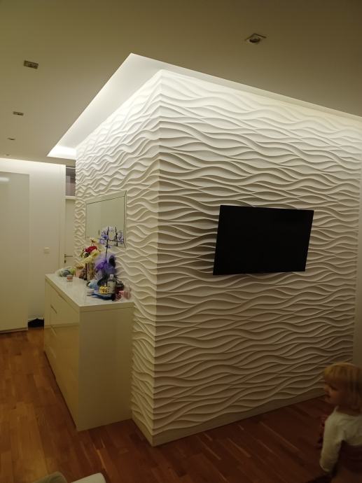 Prodajem zidne gipsane panele wave dizajna u bijeloj boji. Radi se o 3D panelima s valovitim reljefnim uzorkom koji zidu daju dubinu i teksturu. Paneli su novi.