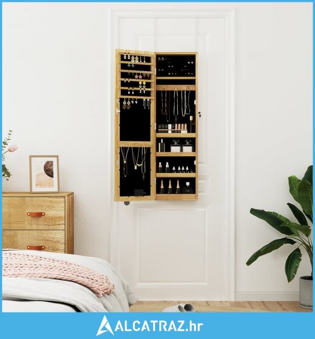 - Dovoljno prostora za pohranu: Ogledalo sa spremištem nudi mnoštvo kukica, vješalica i polica kako bi vaš nakit bio uredno organiziran i na dohvat ruke.