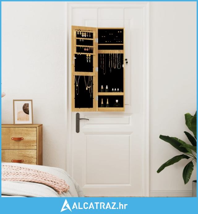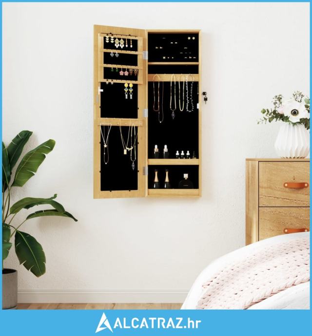 - Dovoljno prostora za pohranu: Ogledalo sa spremištem nudi mnoštvo kukica, vješalica i polica kako bi vaš nakit bio uredno organiziran i na dohvat ruke.