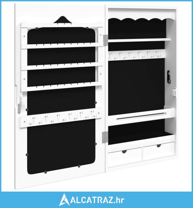 Zidni ormarić za nakit s ogledalom bijeli 37,5 x 10 x 67 cm - NOVO