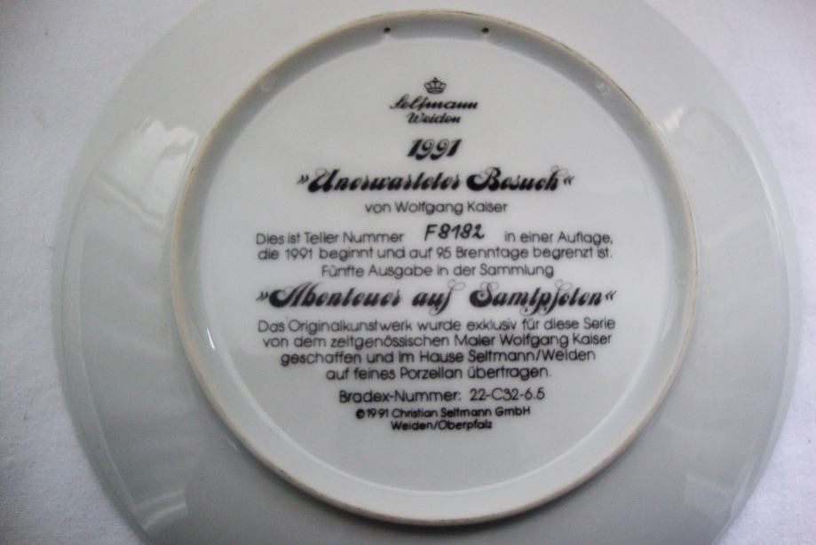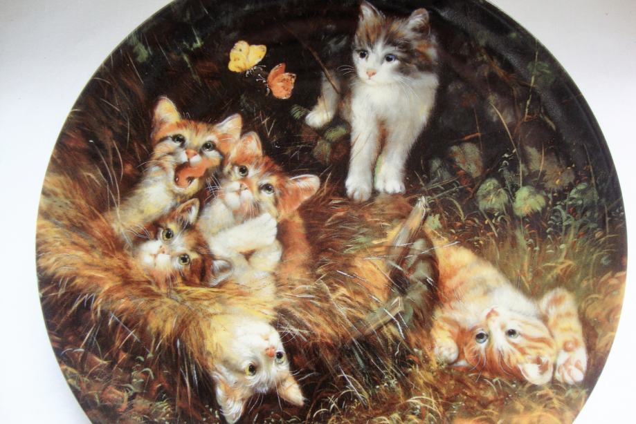 Kolekcionarsko dekorativni porculanski zidni tanjur ručno oslaikao i potpisao Wolgang Kaiser motiv : Mačići
