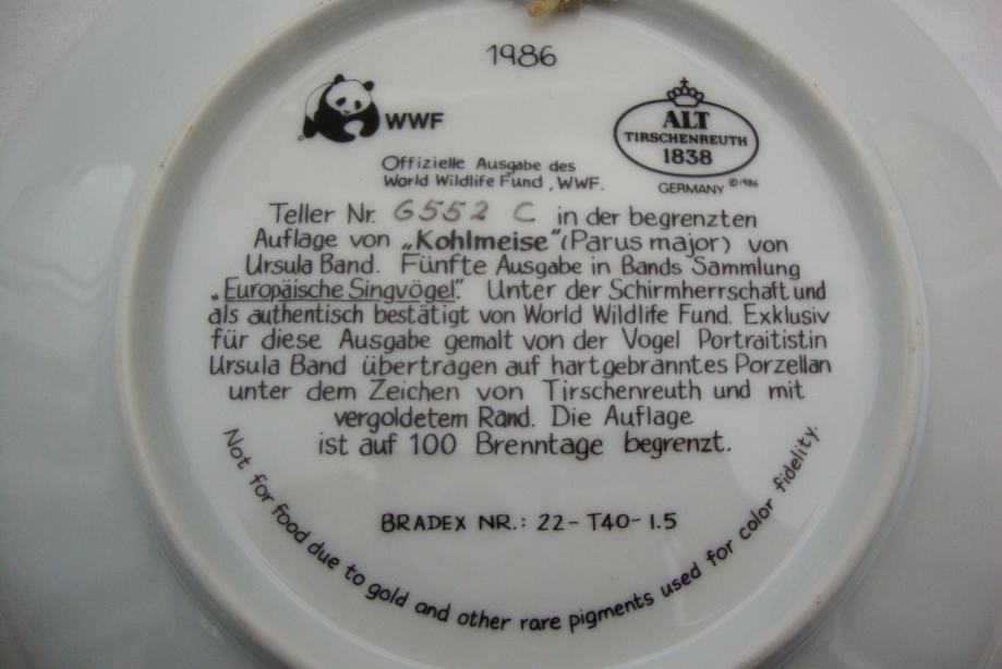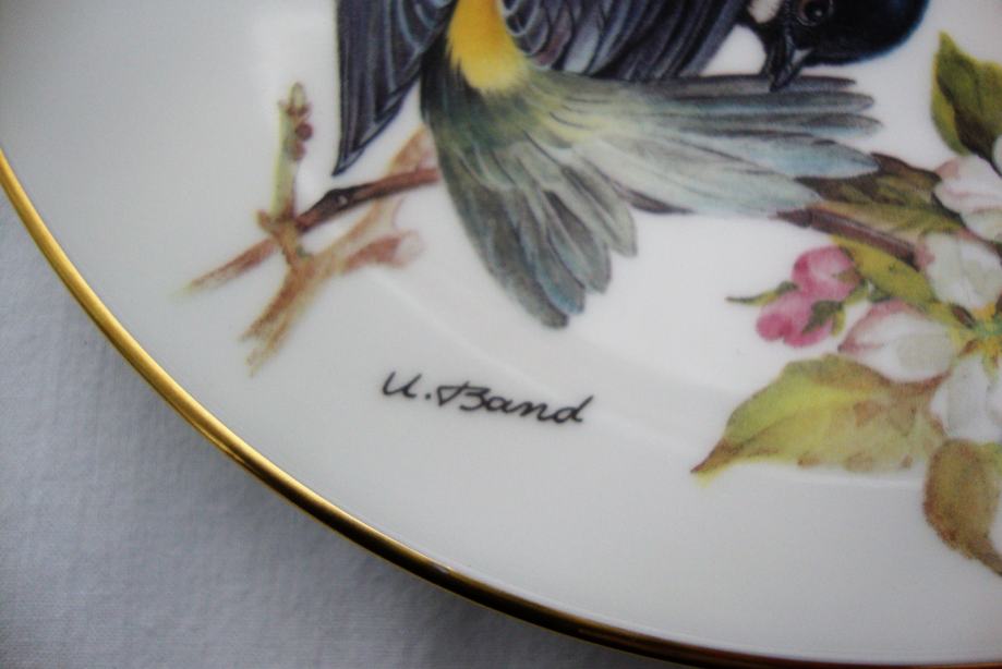 Kolekcionarski tanjur , ručno oslikala umjetnica Ursula Brand motiv evropske ptice : "Sjenica"
