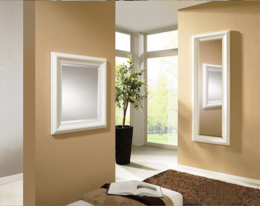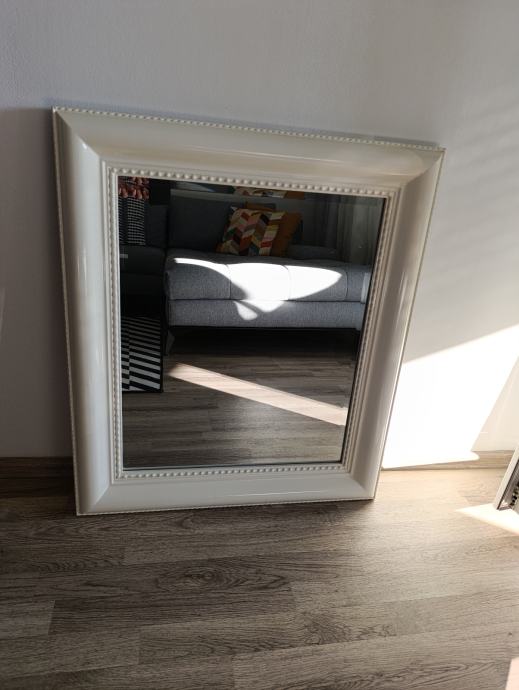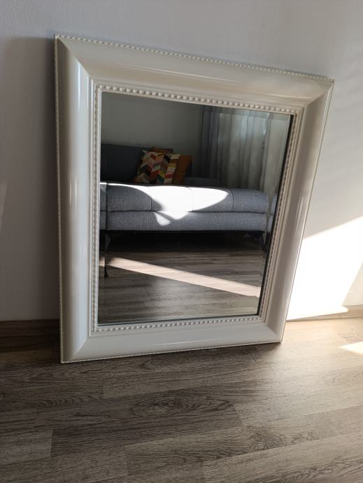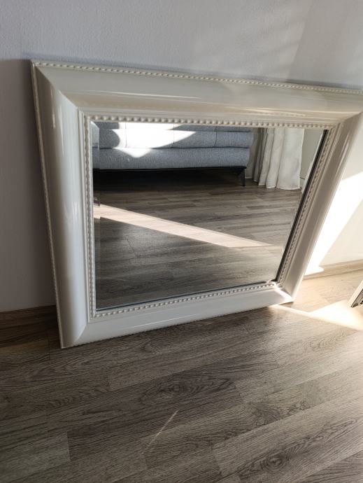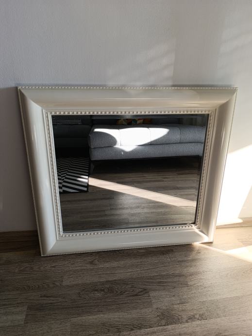 Zidno ogledalo 69.4 X 79.4 X 4.8 cm u vrlo dobrom stanju, okvir puno drvo, bijelo.
