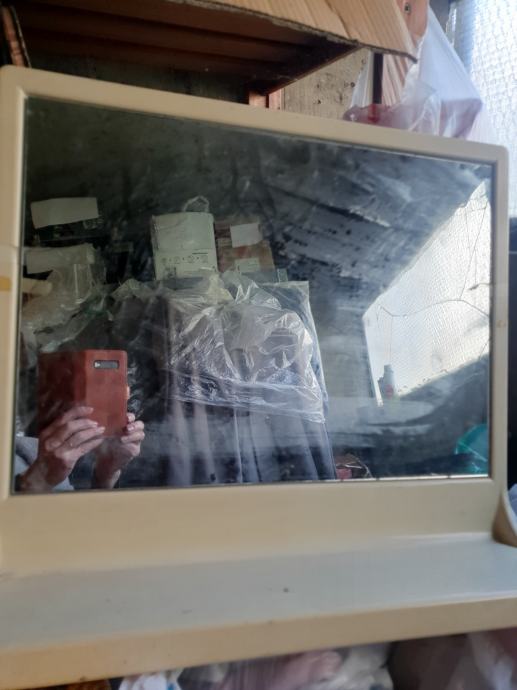 Prodajem kupaonsko zidno ogledalo s jednom policom. Plastično. Plastika promijenila boju, požutjela, od vremena.