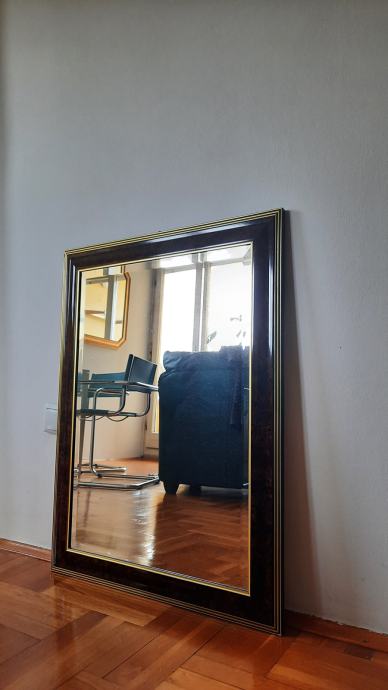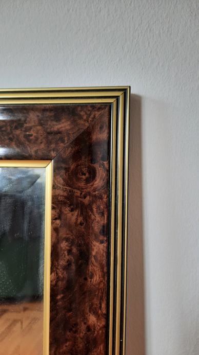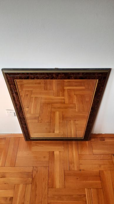 Zidno ogledalo s obrađenim drvenim okvirom. Bez većih oštećenja