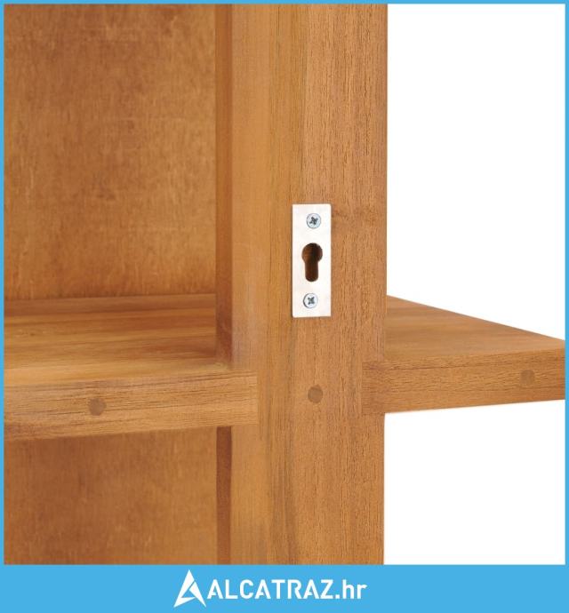 Kupaonsko ogledalo napravljeno je od masivne tikovine s prirodnim premazom, zbog čega je prilično stabilno i jednostavno za održavanje. Ovo drveno ogledalo ima četiri otvorene police na stražnjoj strani, stoga ga možete upotrebljavati da se pogledate u ogledalo, ali nudi i dovoljno prostora za spremanje šampona, kozmetike, pasti za zube itd. Osim toga, proizvod sadrži i rupe za postavljanje na zid.