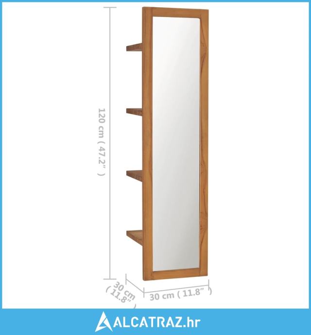 Zidno ogledalo s policama 30 x 30 x 120 cm od masivne tikovine - NOVO