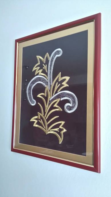 Prodajem sliku ručno izrađenu tehnikom zlatoveza preko kartona s motivom cvijeća. Slika je uokvirena.