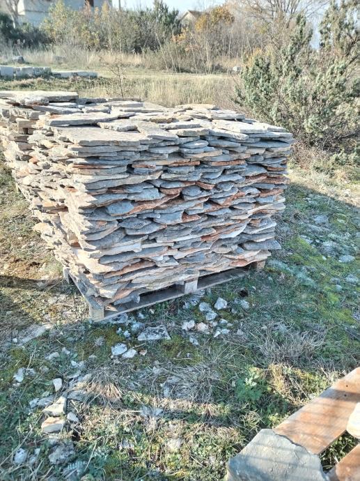 Benkovački kamen, pločice, prirodnih oblika za oblaganje zidova, podova, pečenjara i sl., debljine 1i 2 cm. Cijena 10 eura m2