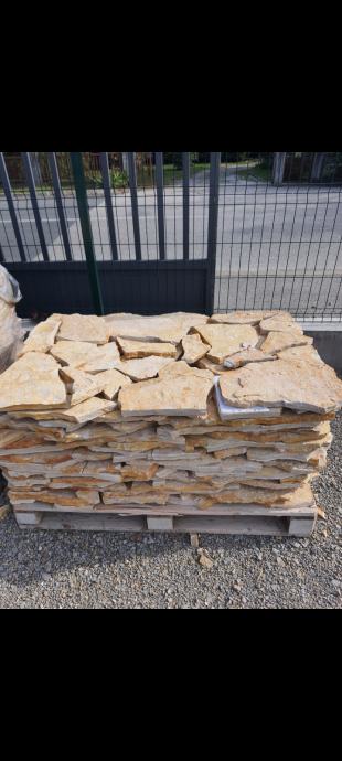 Benkovački kamen lomjeni žuti debljine od 1, 2 cm 3cm i 4cm i 5cm sluzi za oblaganje zidova kamina fasada kuca i za popločavanje dvorista staze parking i za oko bazena