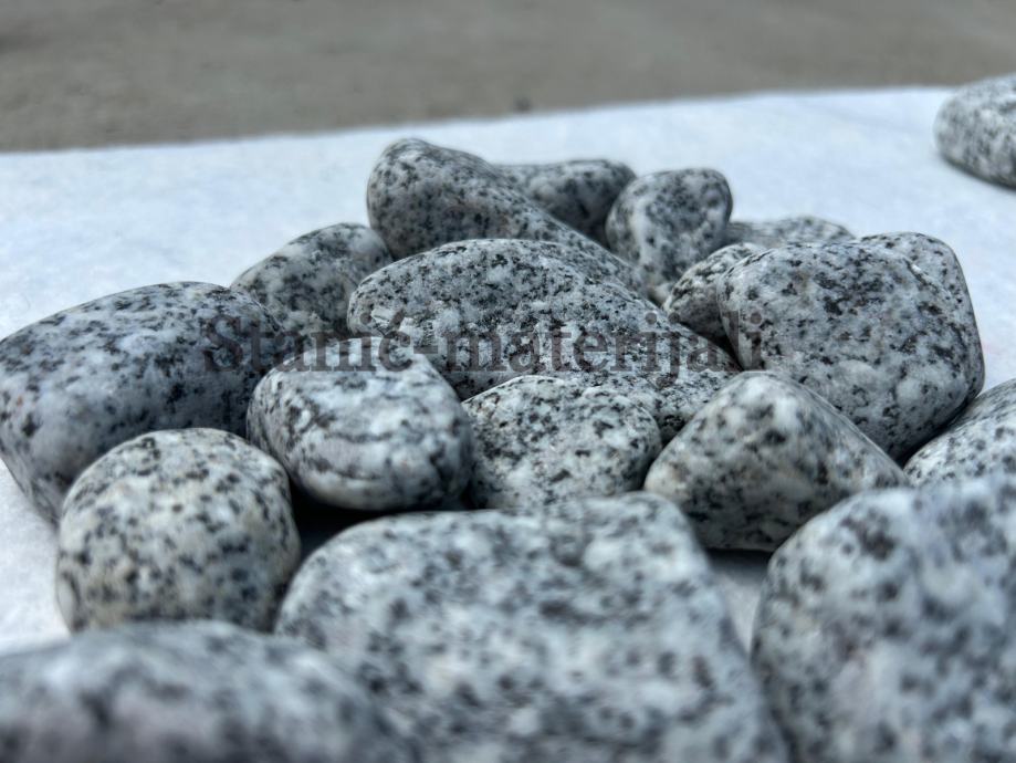 Granitni ukrasni oblutak je prirodan kamen izrađen od tvrdog i dugotrajnog granita. Karakterizira ga otporna površina, neutralno-siva do sivo-bijela boja s prirodnim šarama koje daju elegantan i prirodan izgled svakom prostoru. Savršen je za okućnice, vrtove, dvorišta, staze, oko bazena, fontana, cvjetnjake i modernu hortikulturu. Izdržljiv je, ne blijedi, ne raspada se i ne zahtijeva dodatno održavanje.