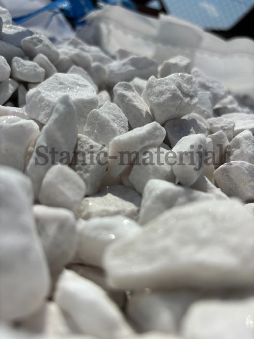 Bijeli lomljeni mramorni kamen visoke kvalitete, karakterističan po intenzivnoj bijeloj boji i sjajnoj, elegantnoj strukturi. Idealan za dekoraciju okućnica, vrtova, kamenjara, cvjetnjaka, oko bazena, staza. Vrlo efektan kao kontrast tamnijim biljkama, travi ili dekorativnim elementima. Ne upija vlagu, ne raspada se, te je otporan na vremenske uvjete.