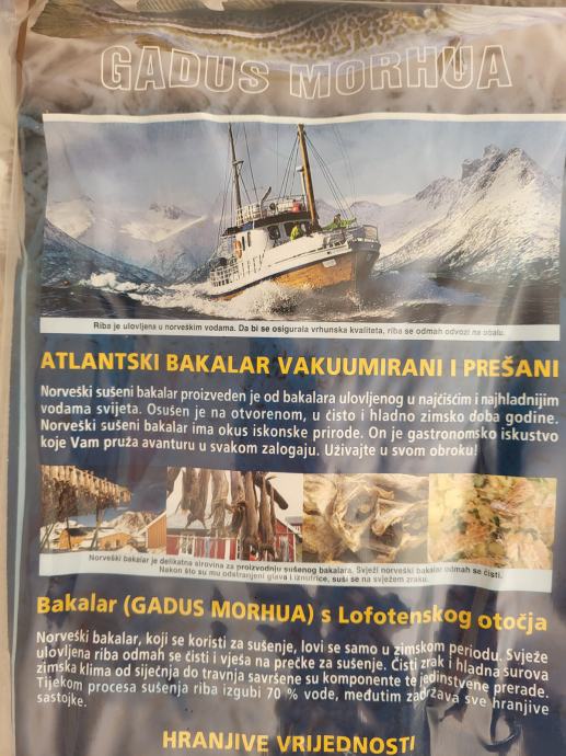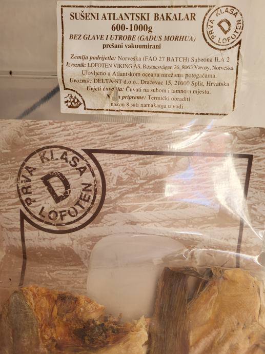 Norveški sušeni, vakumirani i prešani bakalar prve klase sa pečatom na sebi, prodajem.
