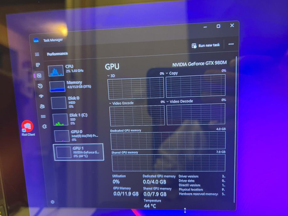 - GPU : NVIDIA GeForce GTX 980M (4 GB, ddr5) - ukupna memorija i brzina memorije