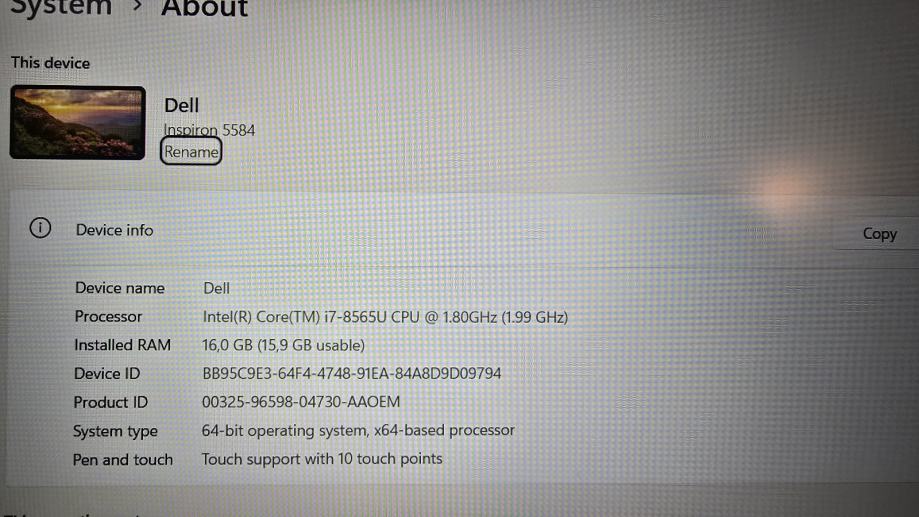 Dell Inspiron 15, i7, 16GB DDR4, 256GB SSD, 15.6" touch, WIN 11