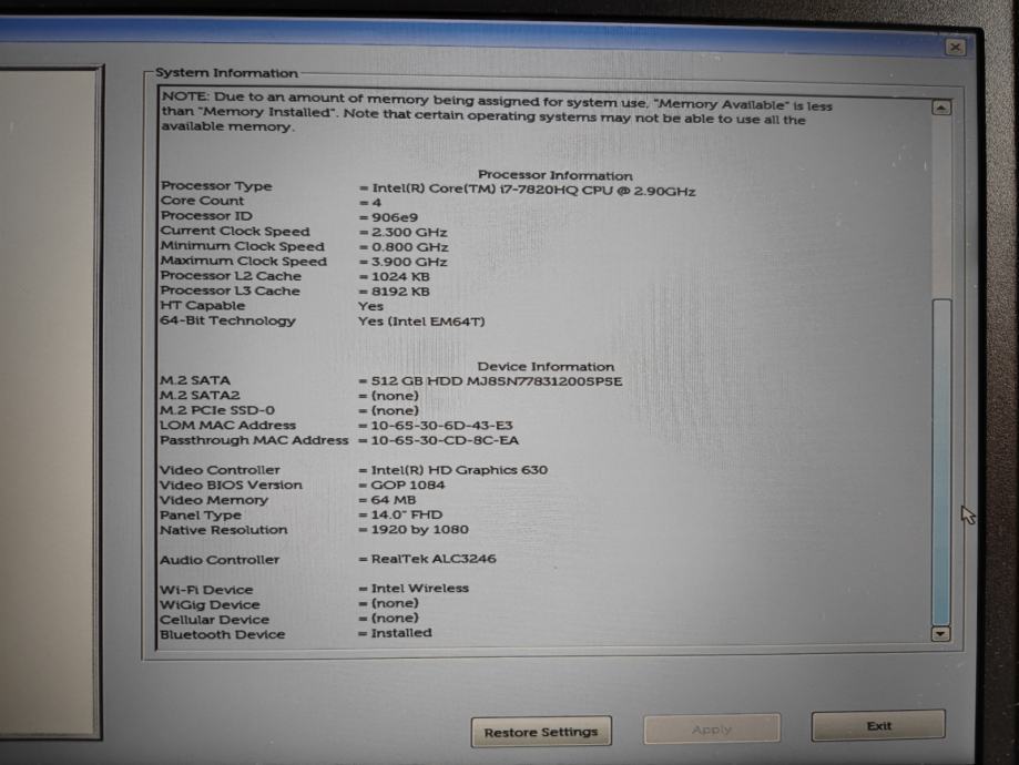 i7-7820HQ (Quad Core, 2.90GHz, up to 3.90GHz, 8MB cache)