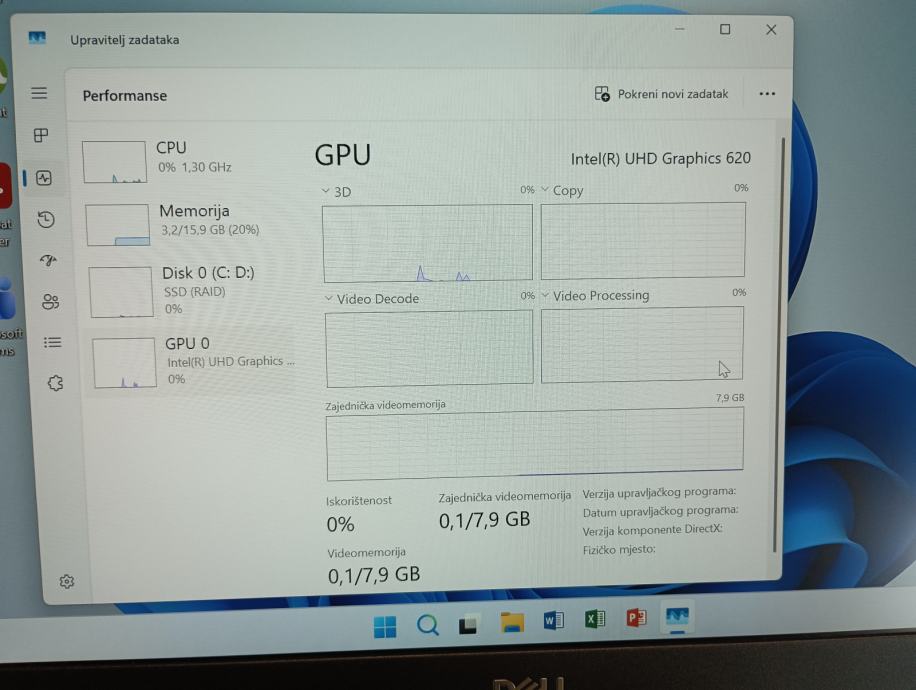Grafička kartica: Intel UHD 620, Up to 3.9GB Shared memory