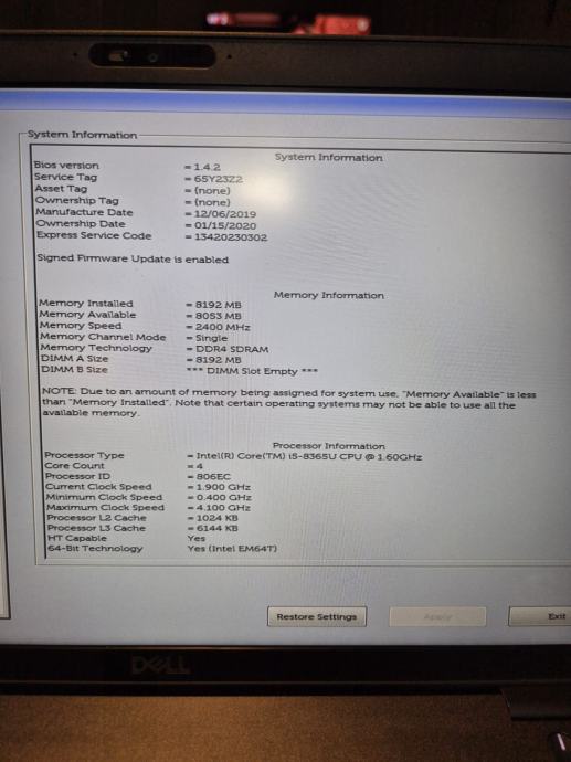 Procesor (CPU): Intel® Core™ i5-8365U (4 jezgre / 8 threadova, 1.6 GHz do 4.1 GHz Turbo)