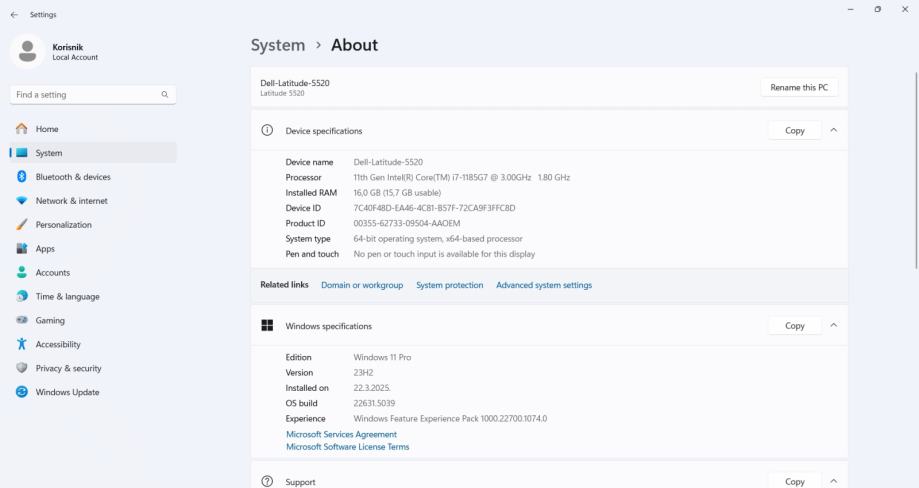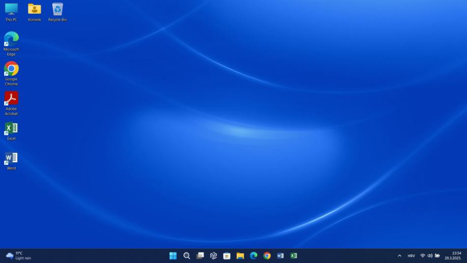 Na laptopu je tvornički DELL OS WIN11 PRO x64 operativni sustav (verzija 24H2). Digtialna aktivirana licenca za win11 pro. Windowsi na engleskom sa podešenim regionalnim postavkama za Hrvatsku. Office 2019 pro sa hrvatskim language pack-om licenciran.