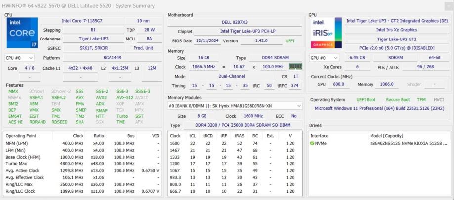 DELL Latitude 5520 i7-1185G7/16GB ram /512GB nvme SSD/IntelHD/15.6 FHD