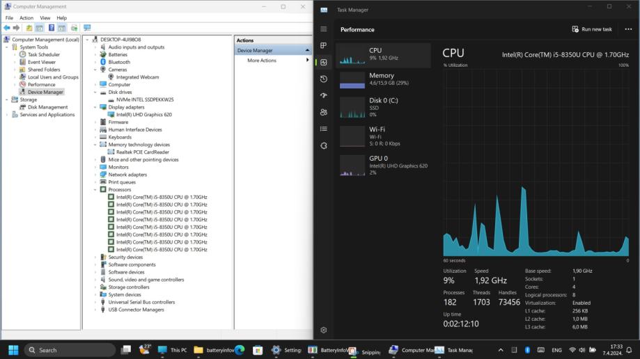 Processor: Intel Core i5-8350U 4 x 1.7 - 3.6 GHz, Kaby Lake Refresh