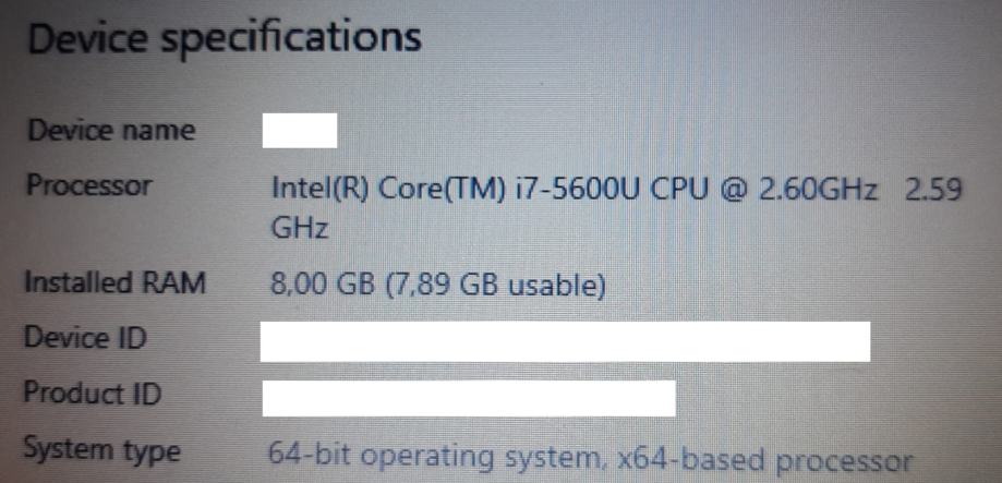 CPU: Intel i7-5600U, 2.6Ghz (Turbo Boost do 3.20 GHz, 4MB Cache, 15W)