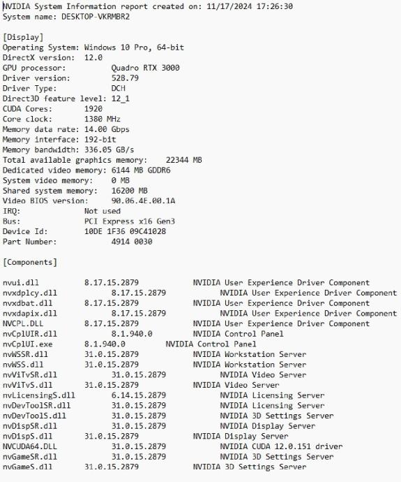 Vrsta video kartice: NVIDIA Quadro RTX 3000
