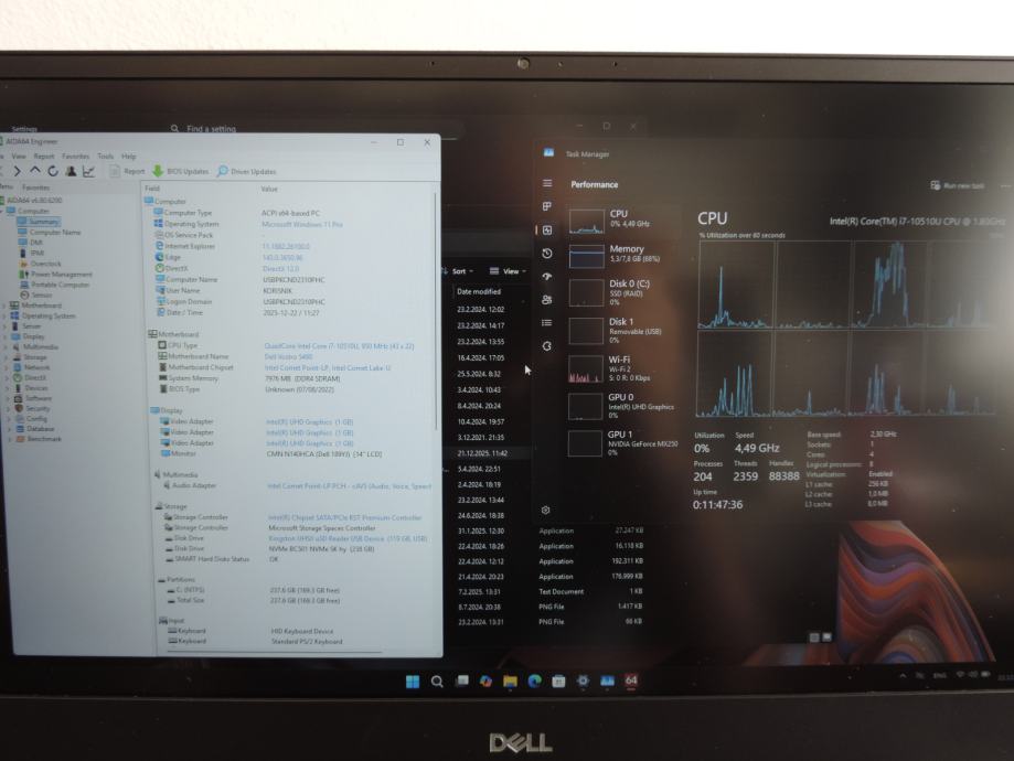 Laptop je prošao je kroz detaljnu provjeru i čišćenje izvana i iznutra. Termalne paste procesora i grafičke su promijenjene i računalo radi bez ikakvih problema ili pregrijavanja pod punim opterećenjem. Vrlo brz, spreman za upotrebu za manje od 10 sekundi nakon pritiska na dugme za uključivanje. Procesor I7 i 3D Grafika nVidia GeForce MX250 dostatni i za teže zahtjeve.