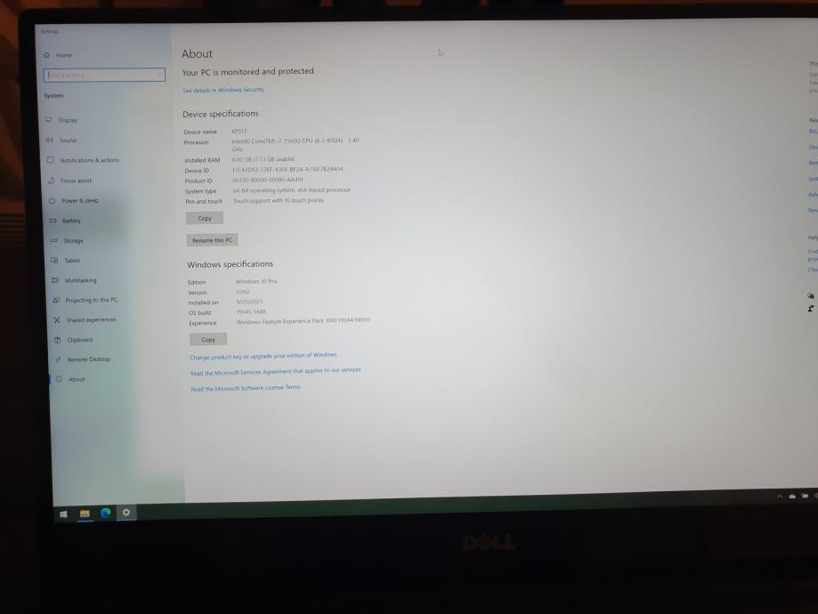 Dell XPS 13, i7 7500U, 8 GB RAM, 256 GB SSD, QHD+, Touch screen