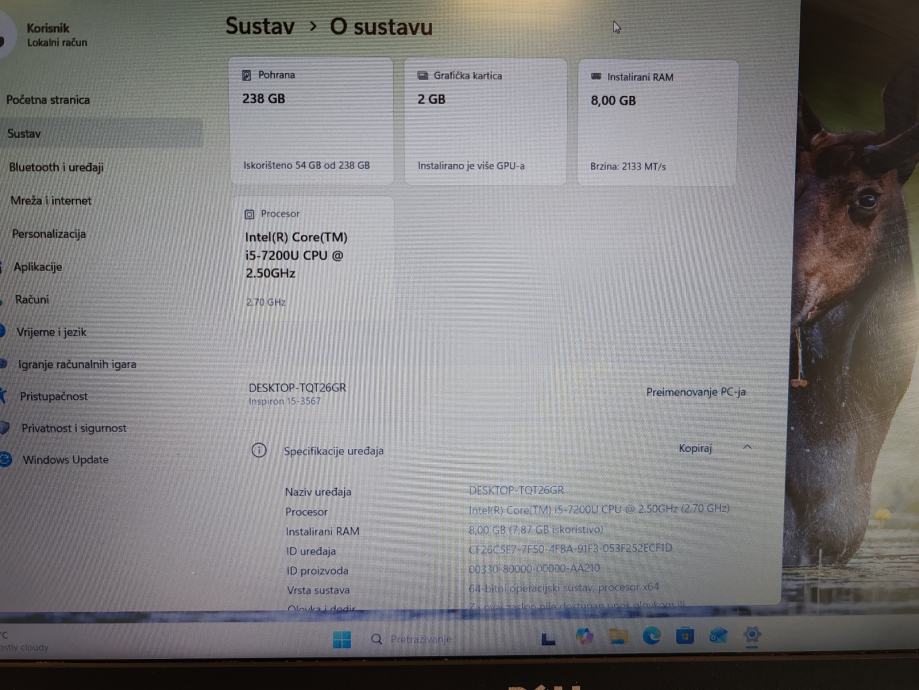 Intel i5 sedme generacije dual grafika 8gbddr4 u jednom cipu jedno mjesto slobodno dvd rw čitač kartica Webcam I dr
