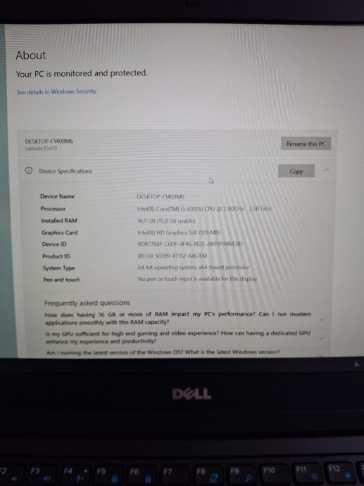 Laptop Dell Latitude E5470 i5 6300u/16gb/256 ssd/14'FHD/Win 10 pro