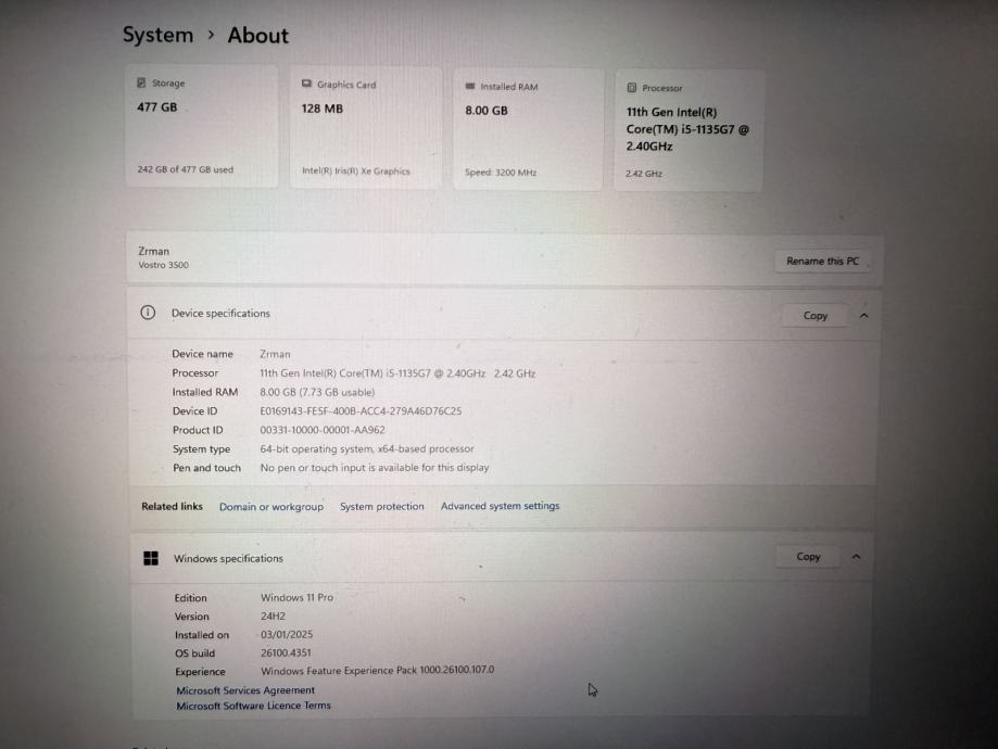 LAPTOP - DELL Vostro 3500 i5 - 8gb 512 SSD , 15,6 " - odlično stanje