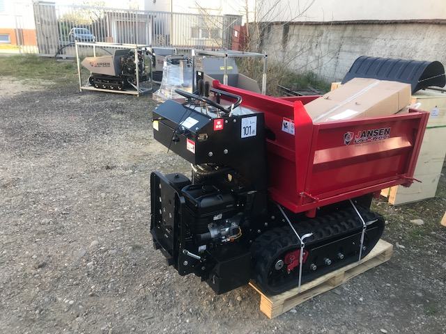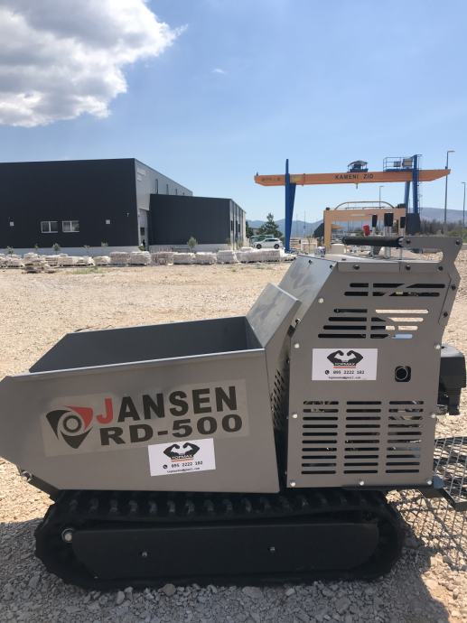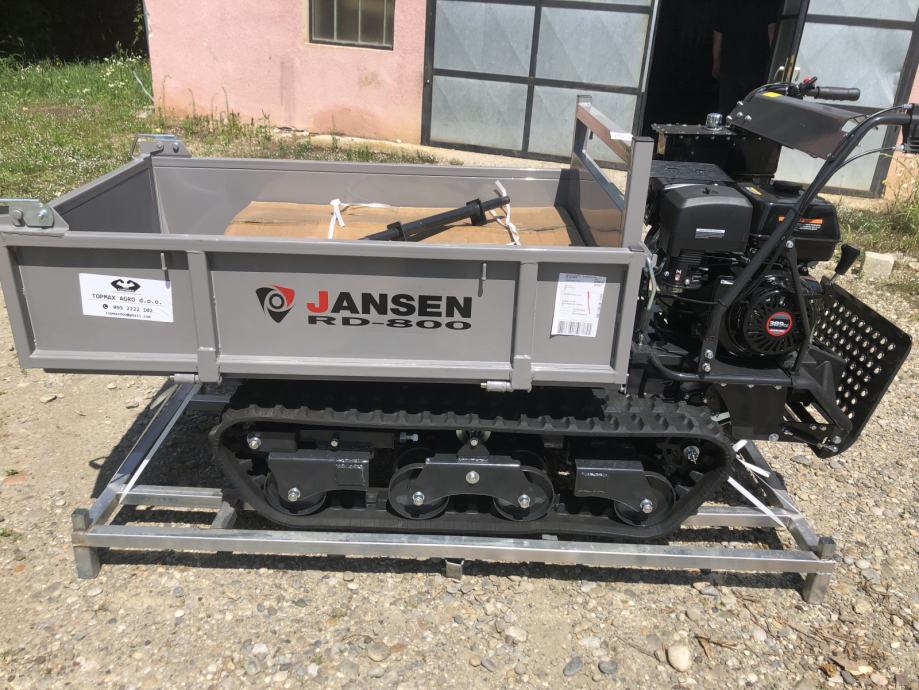 Zbog svoje izuzetno robusne konstrukcije, RD-1000 je idealno prilagođen za najteže i najsloženije primjene. Tamo gdje drugi damperi na gusjenicama ne uspiju, RD-1000 zaista počinje s radom! Jedinstven dizajn sa stabilnom platformom za vozača omogućuje rukovatelju udobnu vožnju. Kad se platforma ne koristi, može se preklopiti. Rukovanje je posebno jednostavno i ugodno zbog intuitivne kontrole. Istovarivač gusjenica Jansen RD-1000 ima benzinski motor Briggs & Stratton s 13 KS, koji se može pokrenuti električnim pokretačem ili pokretačem na izvlačenje.