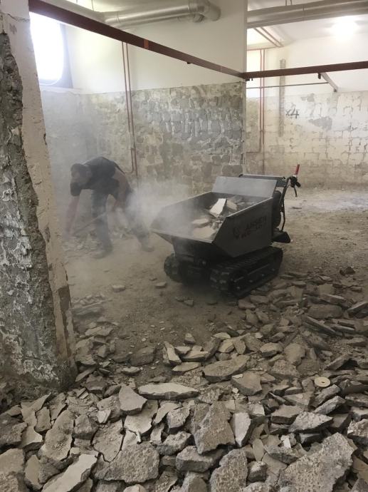 Budući da se korito može naginjati s tri strane, ovaj stroj je idealno prikladan za uporabu na gradilištima. RD-1000 se može koristiti i u zatvorenom prostoru jer se zbog uskih dimenzija (širine oko 80 cm) može provući kroz gotovo sve otvore vrata!