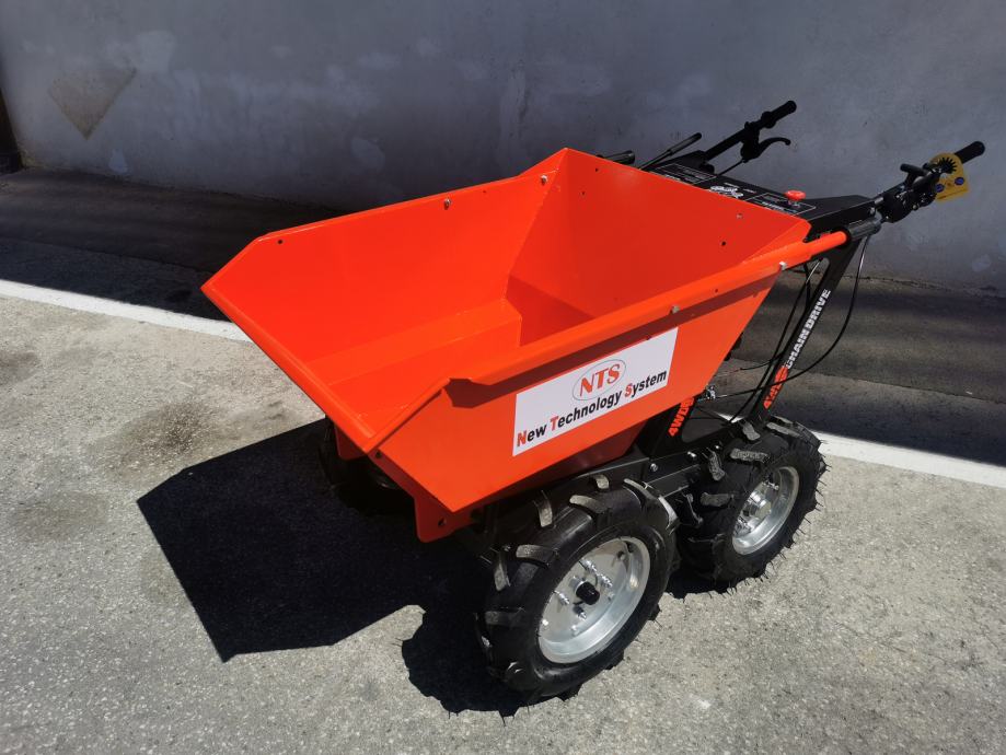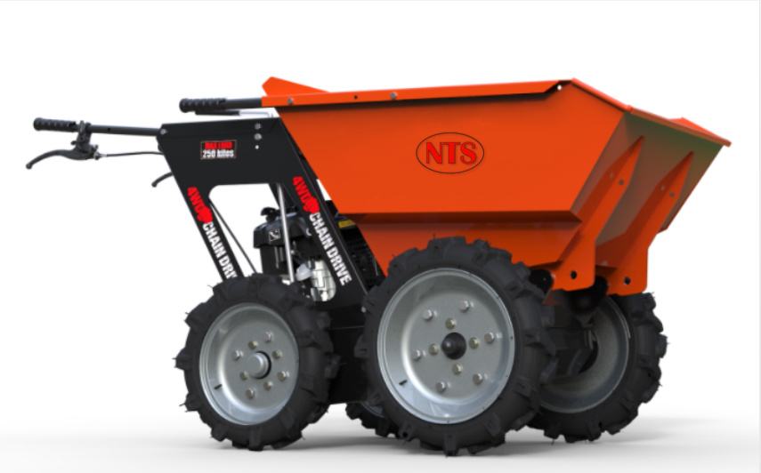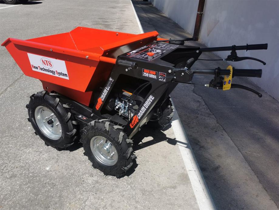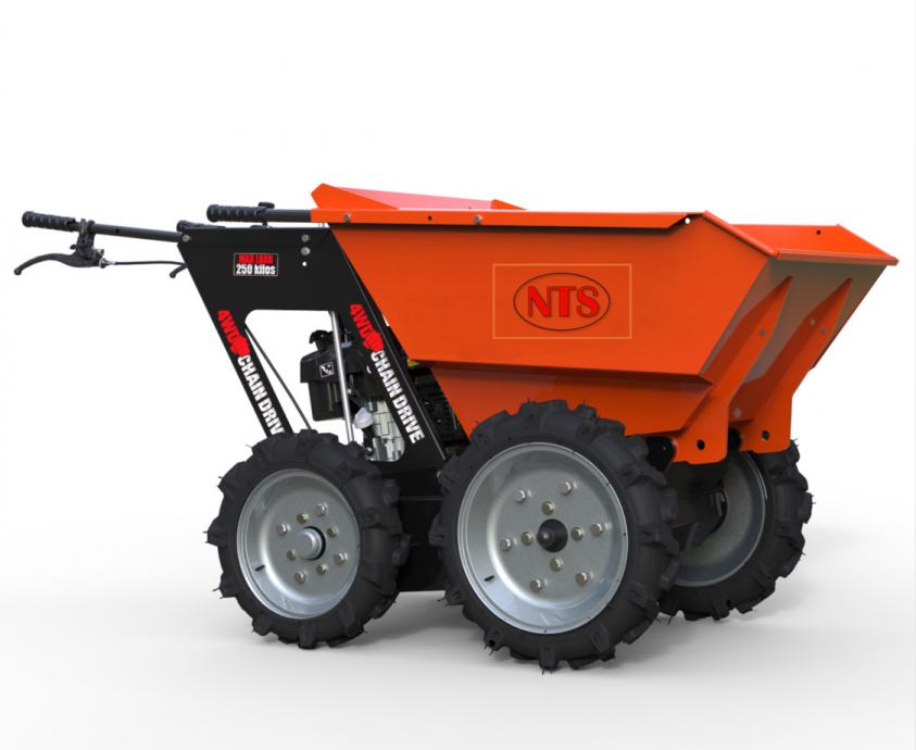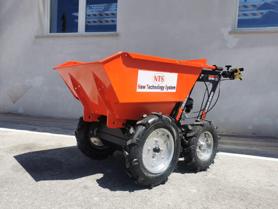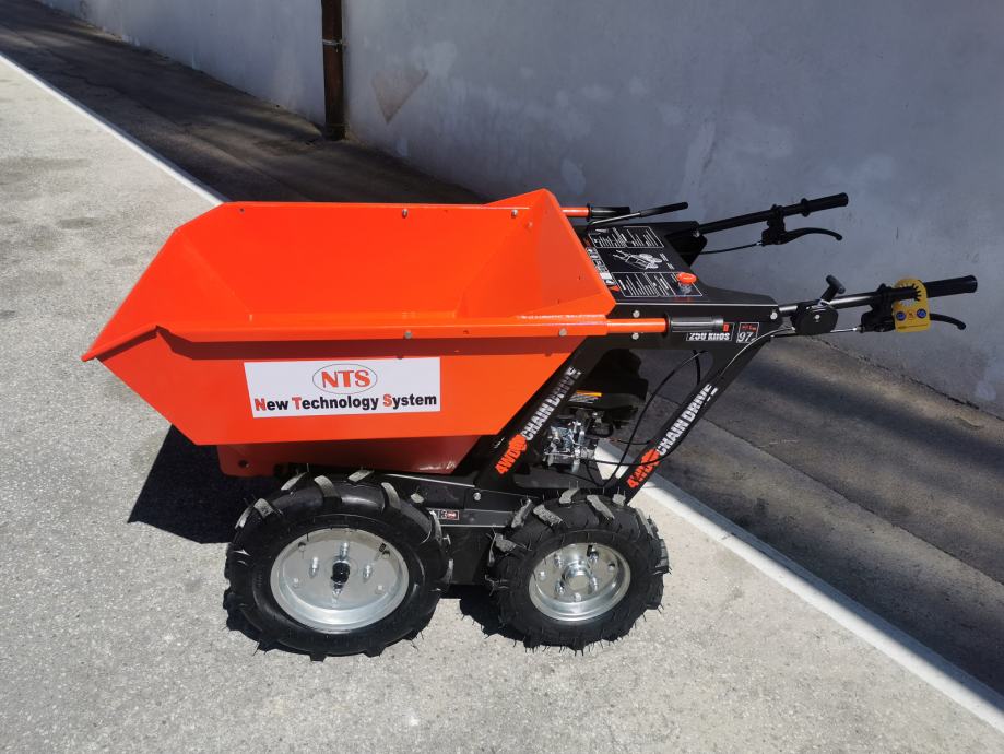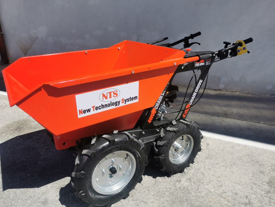 Mini damper na četiri kotača NTS T25 nosivosti do 300 kg može se pohvaliti snažnim Briggs & Stratton B&S motorom, kompaktnom konstrukcijom i jednostavnim upravljanjem. Model T25 prikladan je za jednostavan transport tereta u skladištu, trgovini ili na gradilištu. (dovoz i odvoz zemlje, šljunka, betona,…)