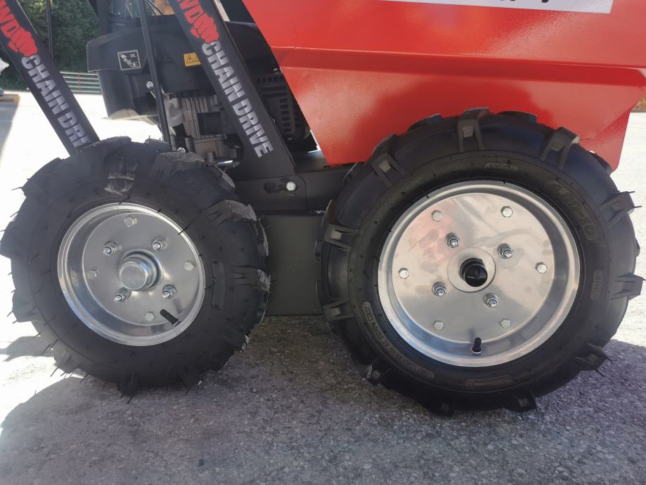 Mini kiper ima 4x4 - pogon na sva četiri kotača u kombinaciji s mehaničkim mjenjačem, omogućuje pouzdan transport tereta do 300 kg. Dimenzije kesona: dužina / širina / dubina 940/705 / 450 mm