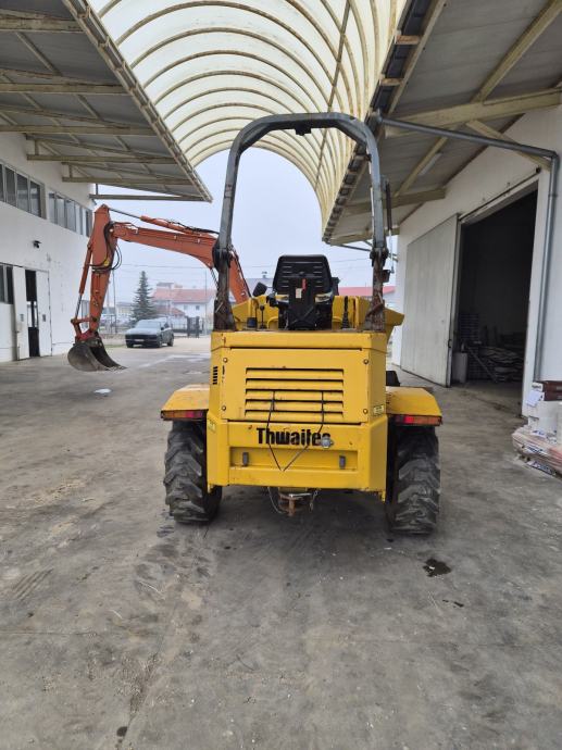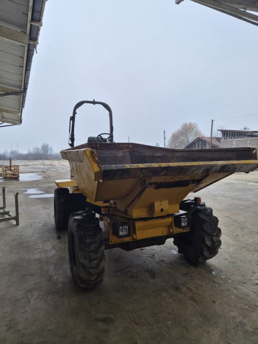 Prodajem građevinski demper žute boje, pogonjen na sva četiri kotača s terenskimgumama pogodnim za rad na zahtjevnom terenu. Radi se o kompaktnom site dumperu s prednjim istovarom (front tip), opremljenim upravljačkim mjestom s volanom i zaštitnim lukom. Korišten na gradilištu za prijevoz i istovar rasutih materijala poput pijeska, šljunka i sličnog.