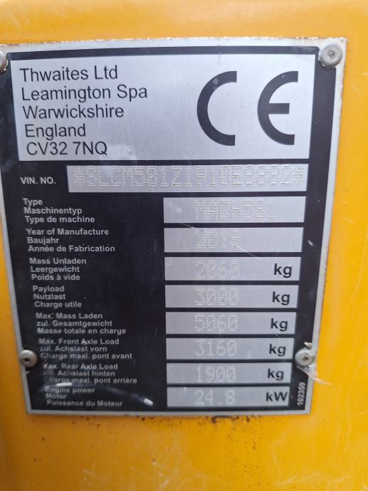 Prodam demper Thwaites, nosivost 3t, Yanmar motor, hidro pogoni, radna i signalna svijetla.