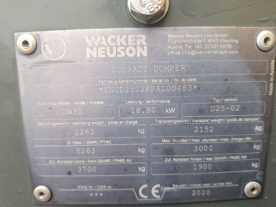 Prodam demper Wacker Neuson, nosivost 3t, hidro pogoni, radna in signalna svijetla, dokumenti, demper kao nov.