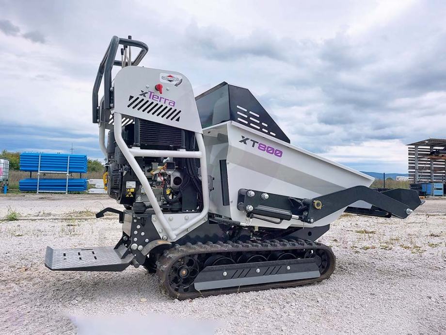 Mini demper XT800 (poznat i kao mini utovarivač, demper ili damper) kompaktan je transporter na gusjenicama za prijenos materijala namijenjen za gradilišta, hortikulturu, poljoprivredu i komunalne radove. Pokreće ga Briggs & Stratton benzinski motor 13,5 HP (jednocilindrični, OHV, 4‑taktni, zračno hlađen) koji nudi pouzdan start i nisku potrošnju.