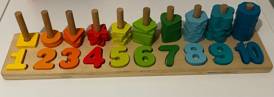 Drvena didaktička igra s prstenovima-brojevi i oblici