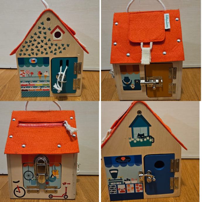 Ova kućica omogućava mališanima da zaigrano upoznaju različite sustave zaključavanja, a također potiče maštu. Osim toga, lagana je i ima ručkicu za nošenje pa ju možete ponijeti svuda sa sobom, a ona će bez problema zaokupirati mališane.