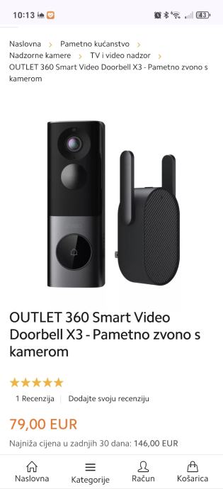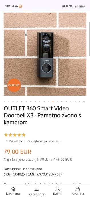 Prodajem napredno video kućno zvono 360 Video Doorbell X3, savršeno za povećanje sigurnosti i kontrole nad Vašim ulazom.