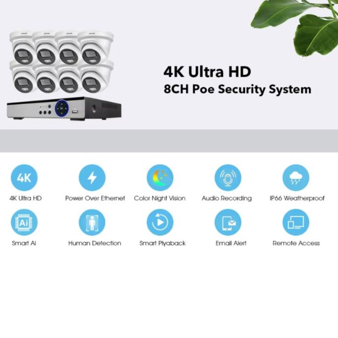 Zaštitite svoj dom ili poslovni prostor uz najnoviju tehnologiju 4K POE CCTV sustava za video nadzor. Ovaj napredni sustav nudi nevjerojatnu kvalitetu slike uz 8MP kamere, omogućujući vam jasnu i preciznu kontrolu nad sigurnošću. Snažna 4K rezolucija pruža oštre i detaljne slike, čak i pri slabom osvjetljenju.